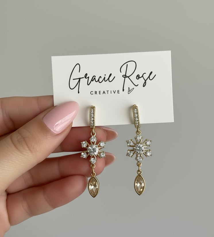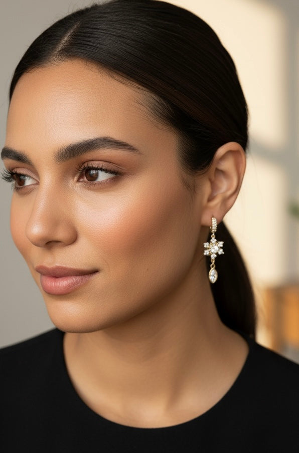 A radiant blend of golden tones and crystal brilliance, these drops capture the quiet sparkle of a frosty morning.