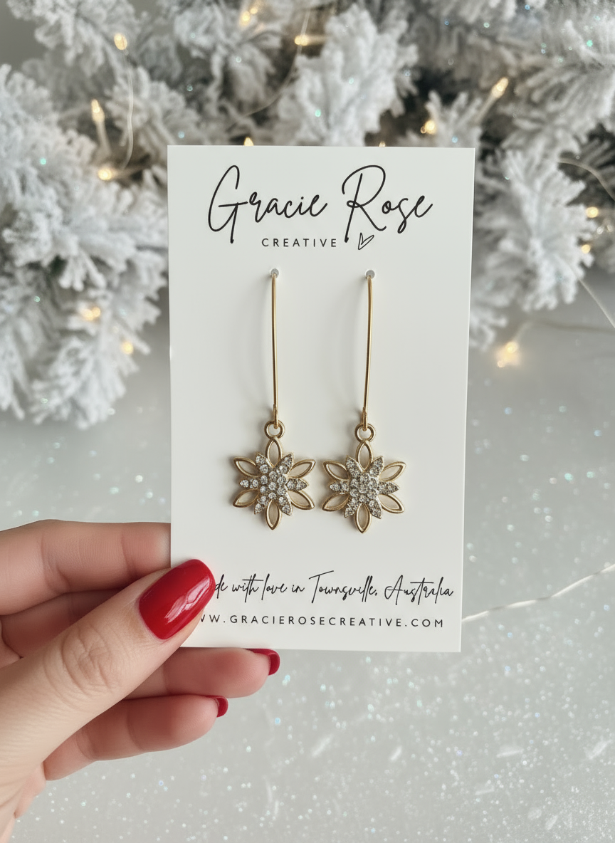 Delicate gold and crystal blooms that shimmer like freshly fallen snow. A timeless touch of elegance for your holiday soirées.