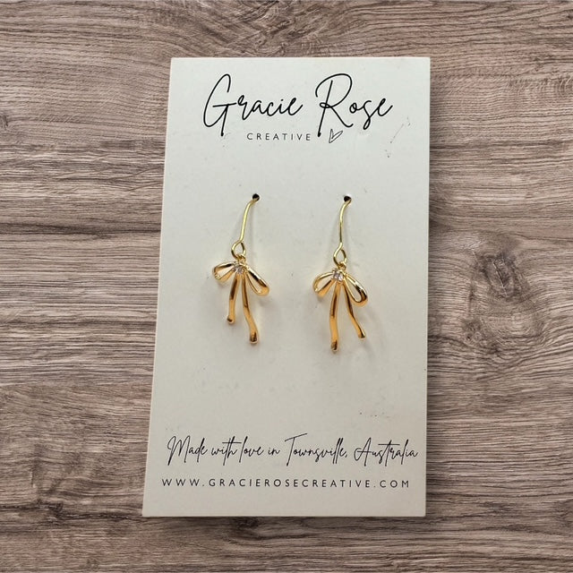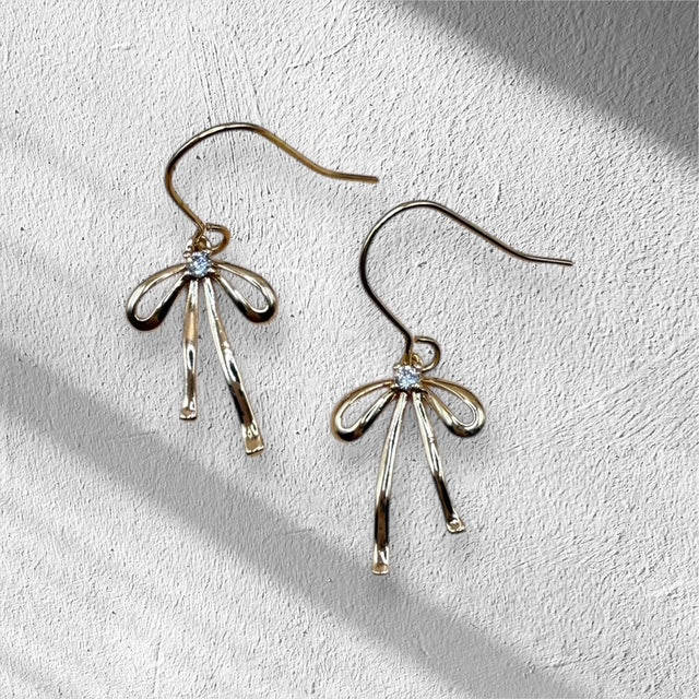 Add a dash of sparkle with these golden bow earrings. They're dainty, and full of charm and the perfect way to add touch of glam to any outfit.