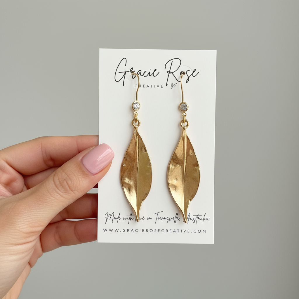 Inspired by eucalyptus leaves, these golden drop earrings bring a touch of nature’s elegance with subtle texture and gentle movement. Lightweight, radiant, and timeless.