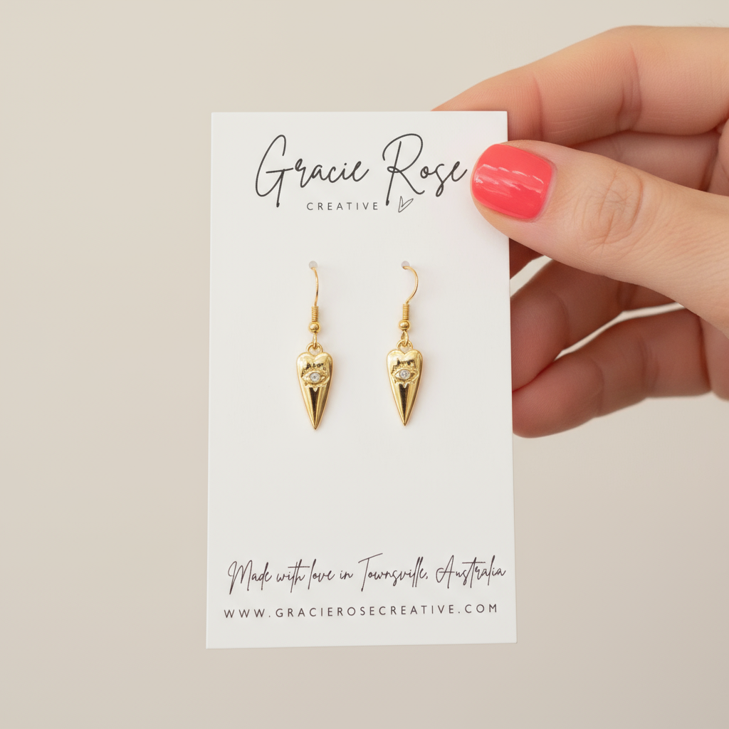 Dainty and bold, these golden eyes drop earrings bring a touch of mystery and charm and are perfect for those who love a little sparkle with meaning.