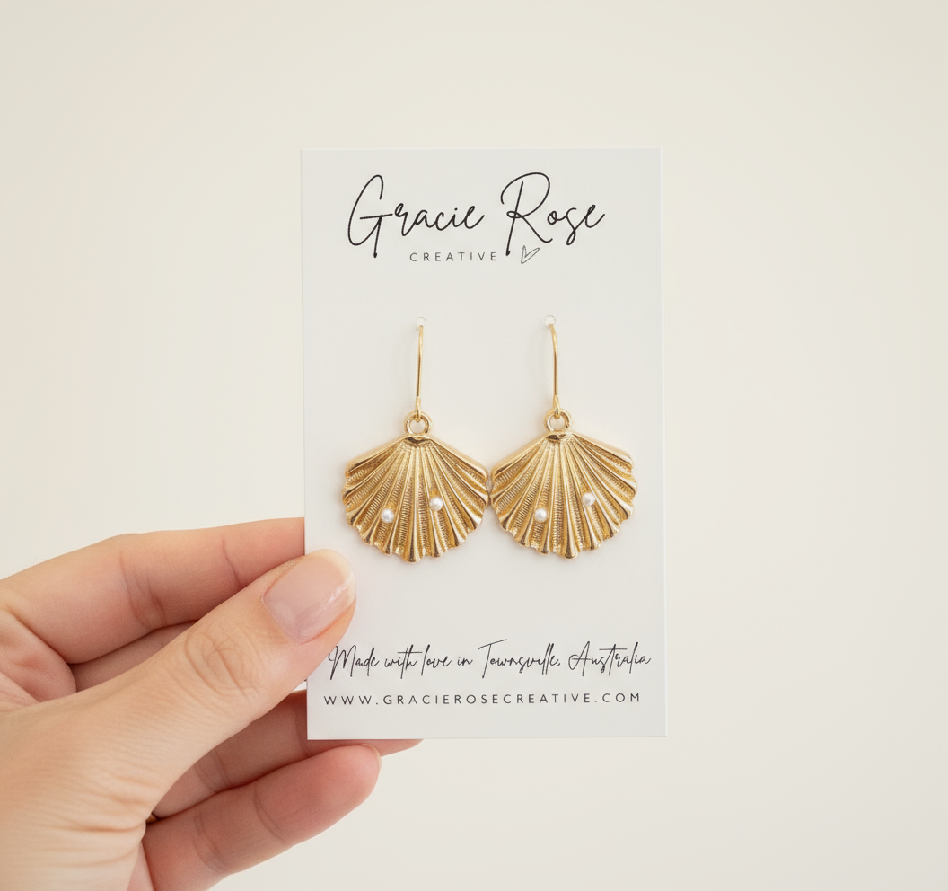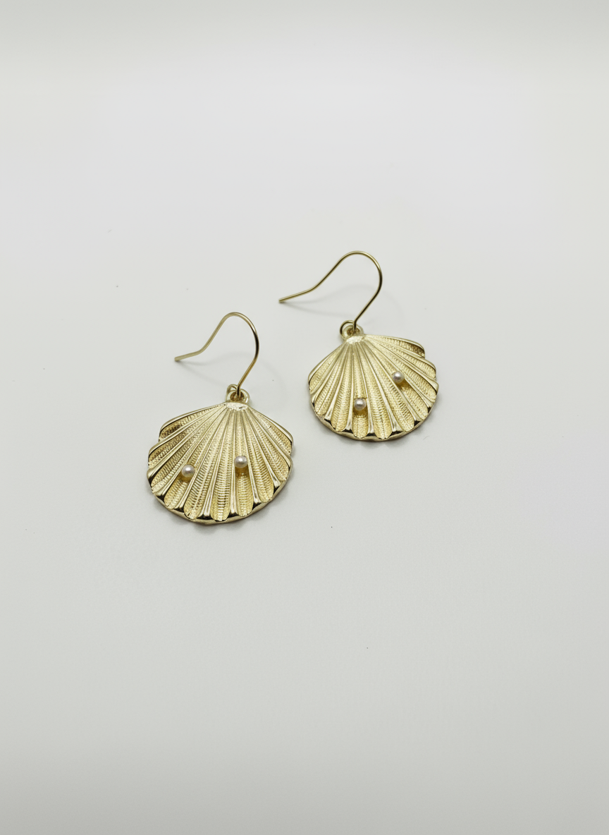 Graceful gold scallop shells cradle delicate pearls, echoing the ocean’s timeless beauty. Oceane Pearl adds a refined coastal touch to your every ensemble.
