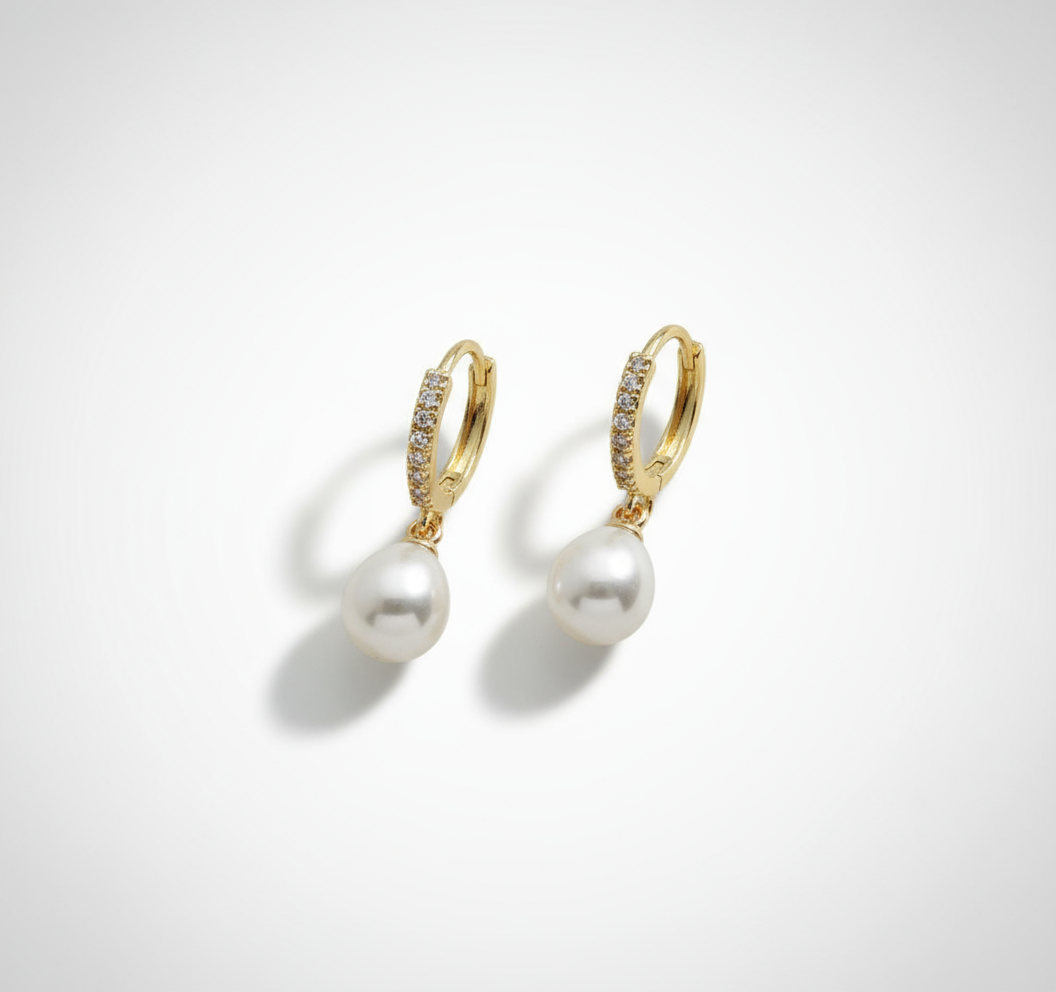A timeless blend of elegance and sparkle, featuring luminous pearls set on diamond-lined hoops for effortless sophistication.