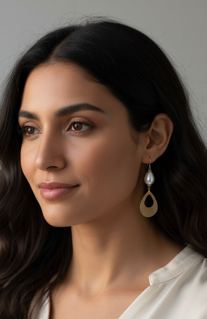 Elegant and timeless, these earrings pair luminous baroque pearls with sculpted gold teardrops, perfect for adding refined radiance to any outfit or occasion.