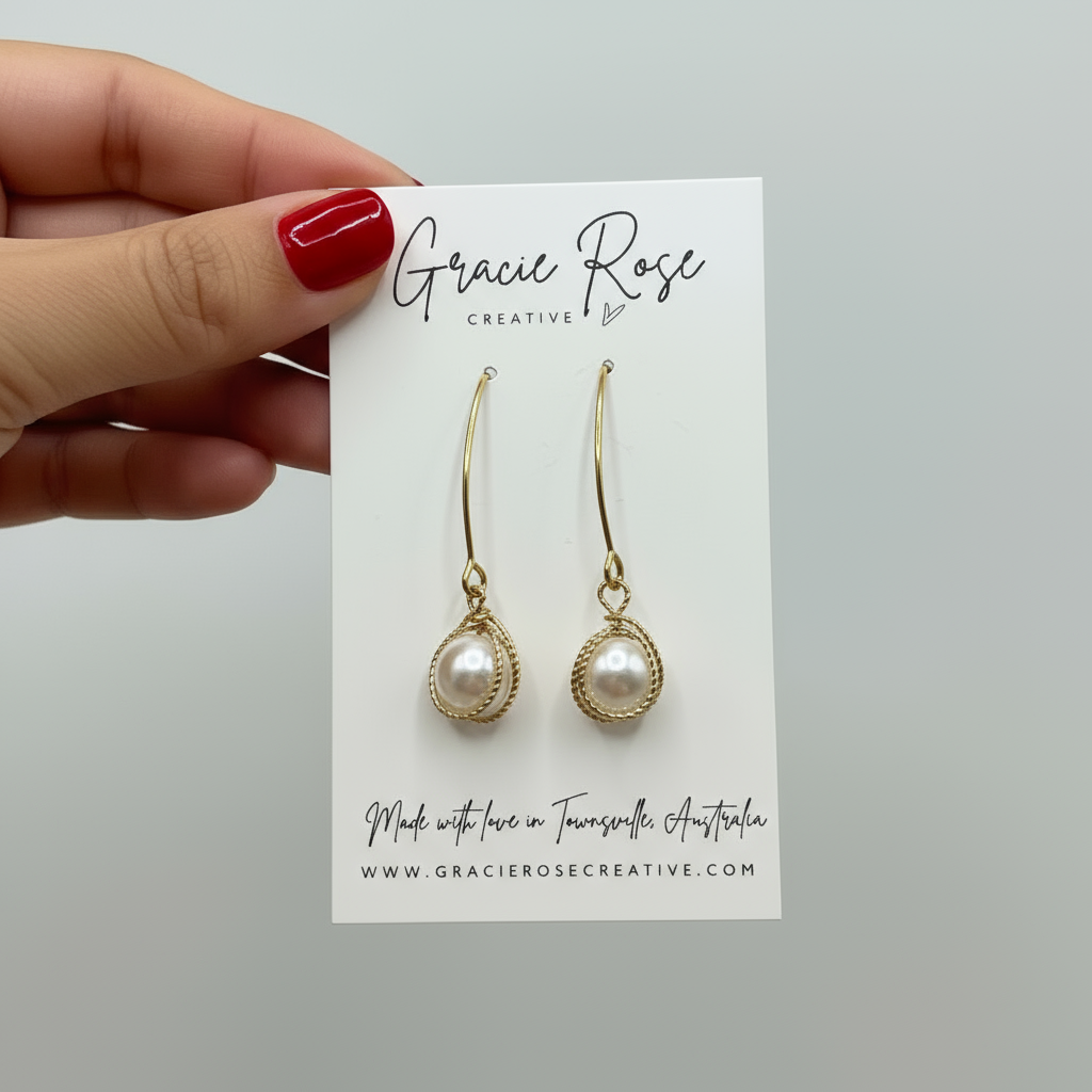 Classic pearl drops wrapped in twisted gold detailing. These long drop earrings are elegant, timeless, and effortlessly chic for both everyday wear and special occasions.