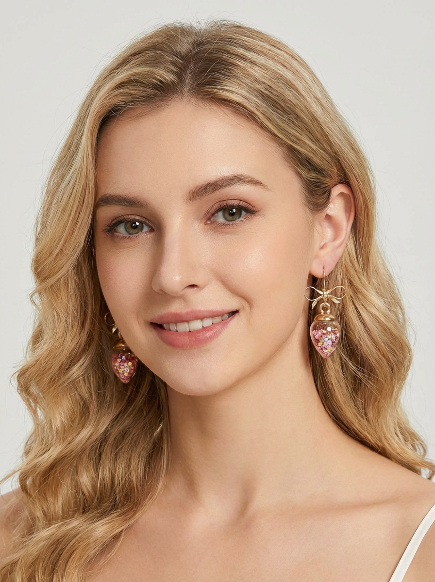 Lightweight and whimsical, these dainty drop earrings feature clear globes filled with colourful shimmering flakes, finished with a golden bow accent. Perfect for adding a subtle sparkle to any outfit.