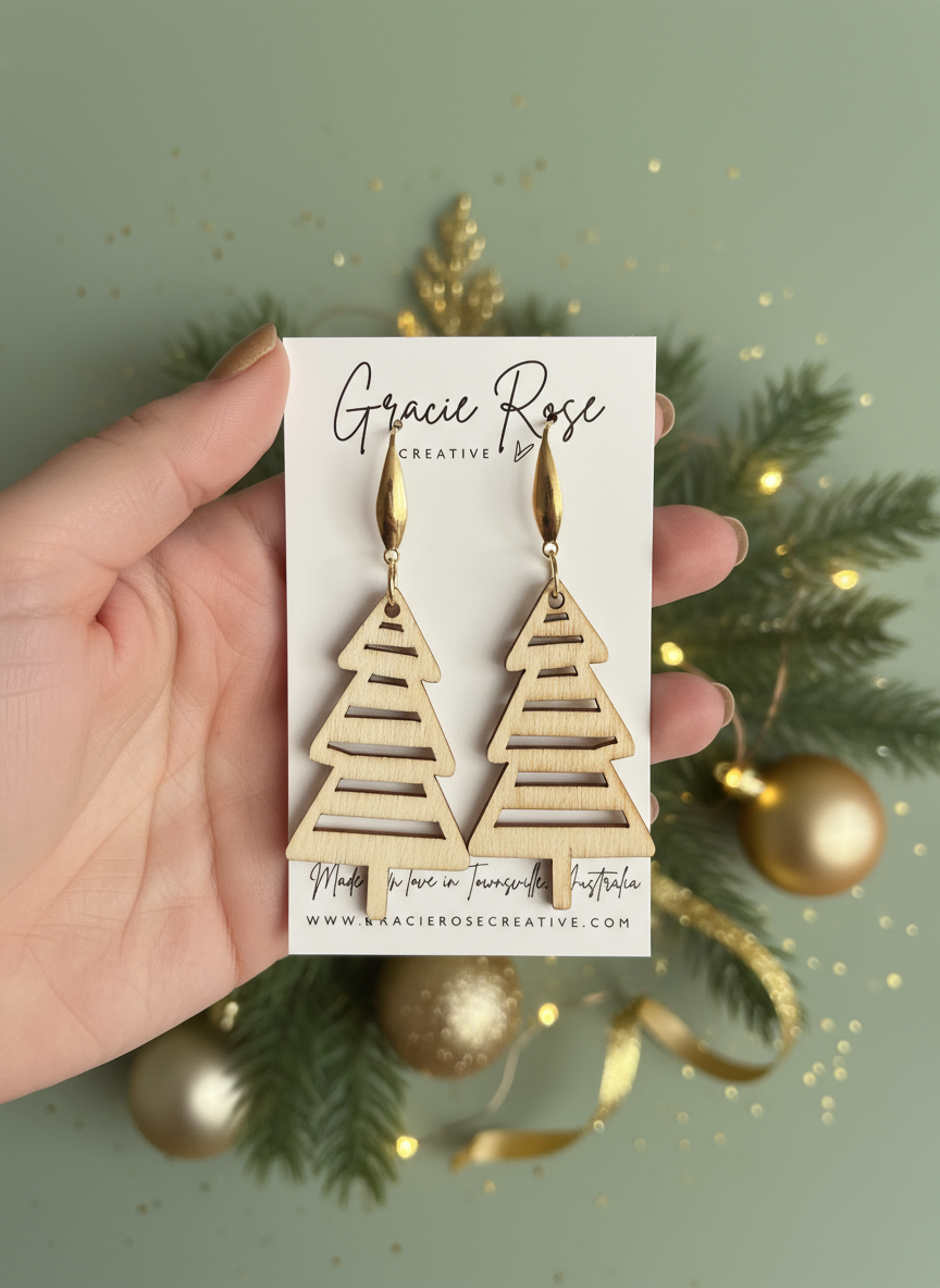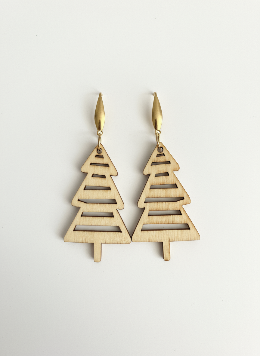 With geometric cutouts and a natural finish, these earrings celebrate raw texture and modern style, perfect for a laid-back Christmas aesthetic.